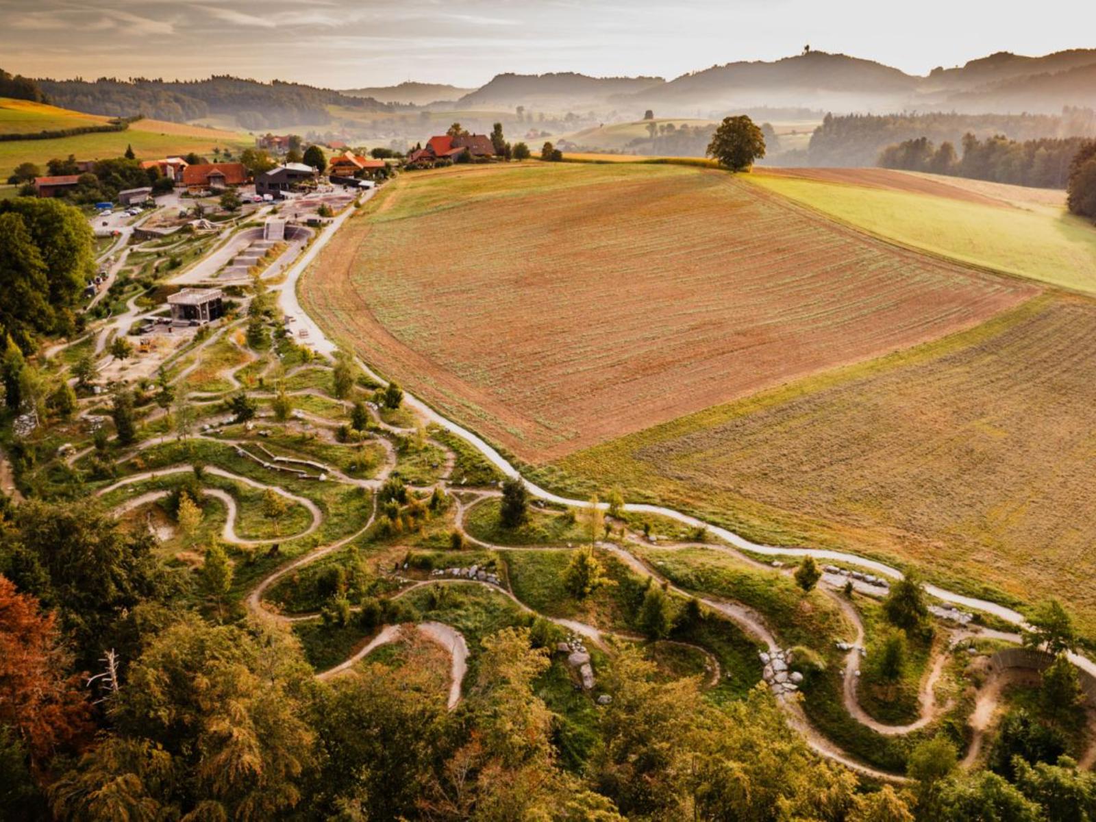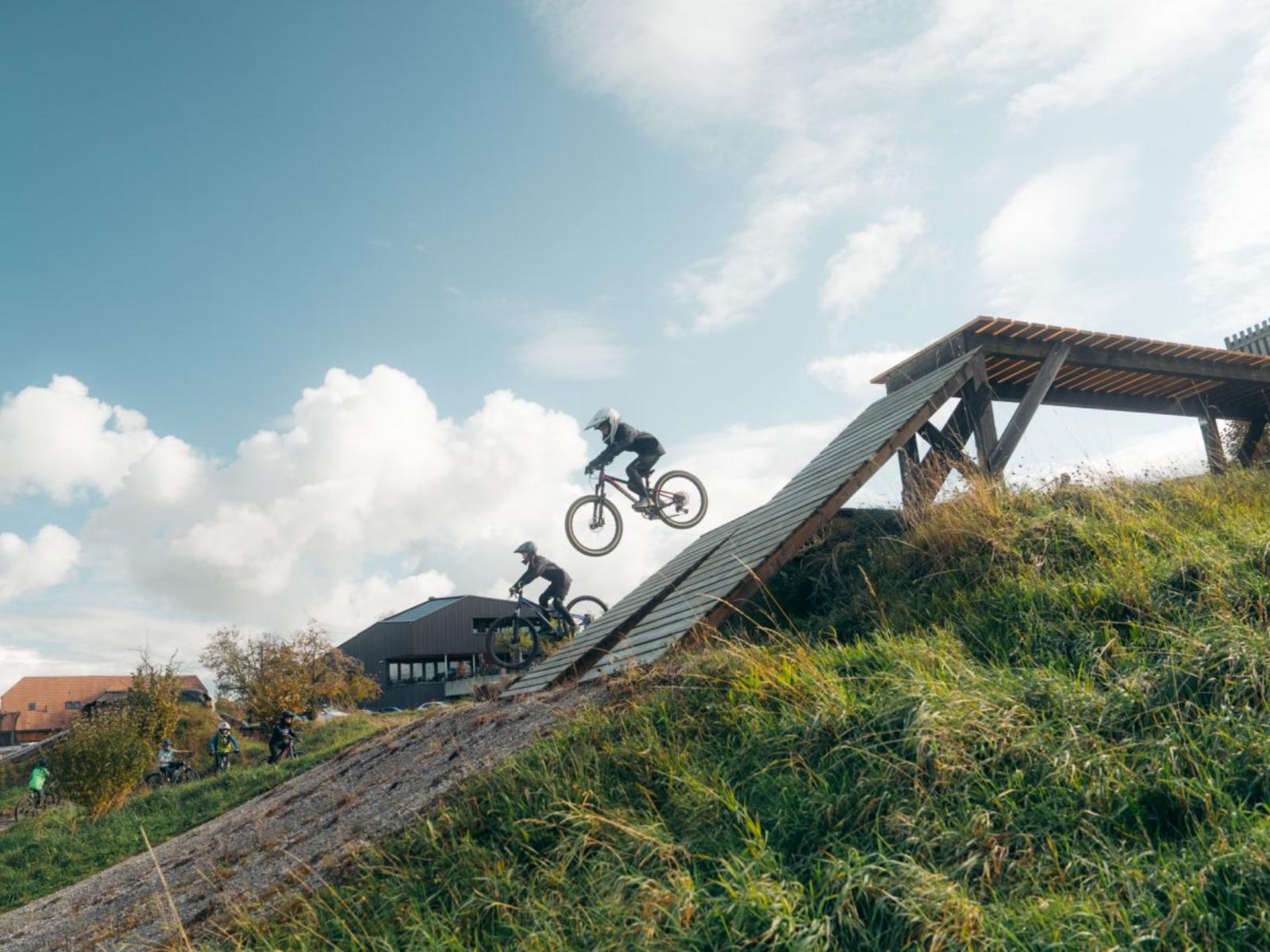 Auf 30’000 m² erwarten dich Pumptracks, Trails, Sprünge, Downhill-Strecken und viele weitere Bereiche, in denen du spielerisch üben, ausprobieren und ganz viel Spass haben kannst.