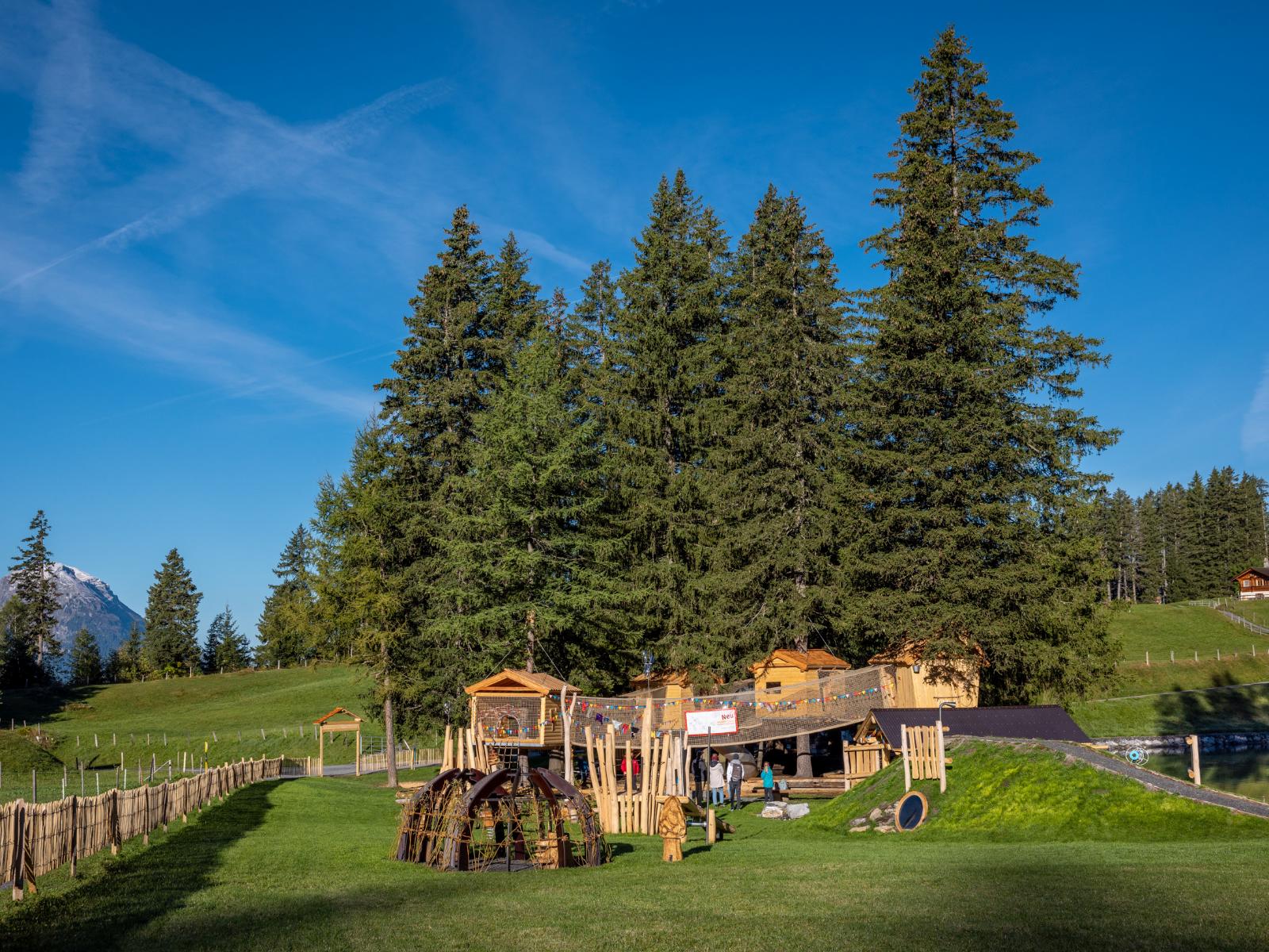 ...auf dem Zwergenweg 'Abenteuer auf dem Zwergenweg' zwischen Mägisalp - Bidmi finden Kinder in einer Höhle kleine Schätze, lassen sich auf der Adlerschaukel in luftige Höhen schwingen und erfahren vieles über die kleinen liebenswerten Geschöpfe.