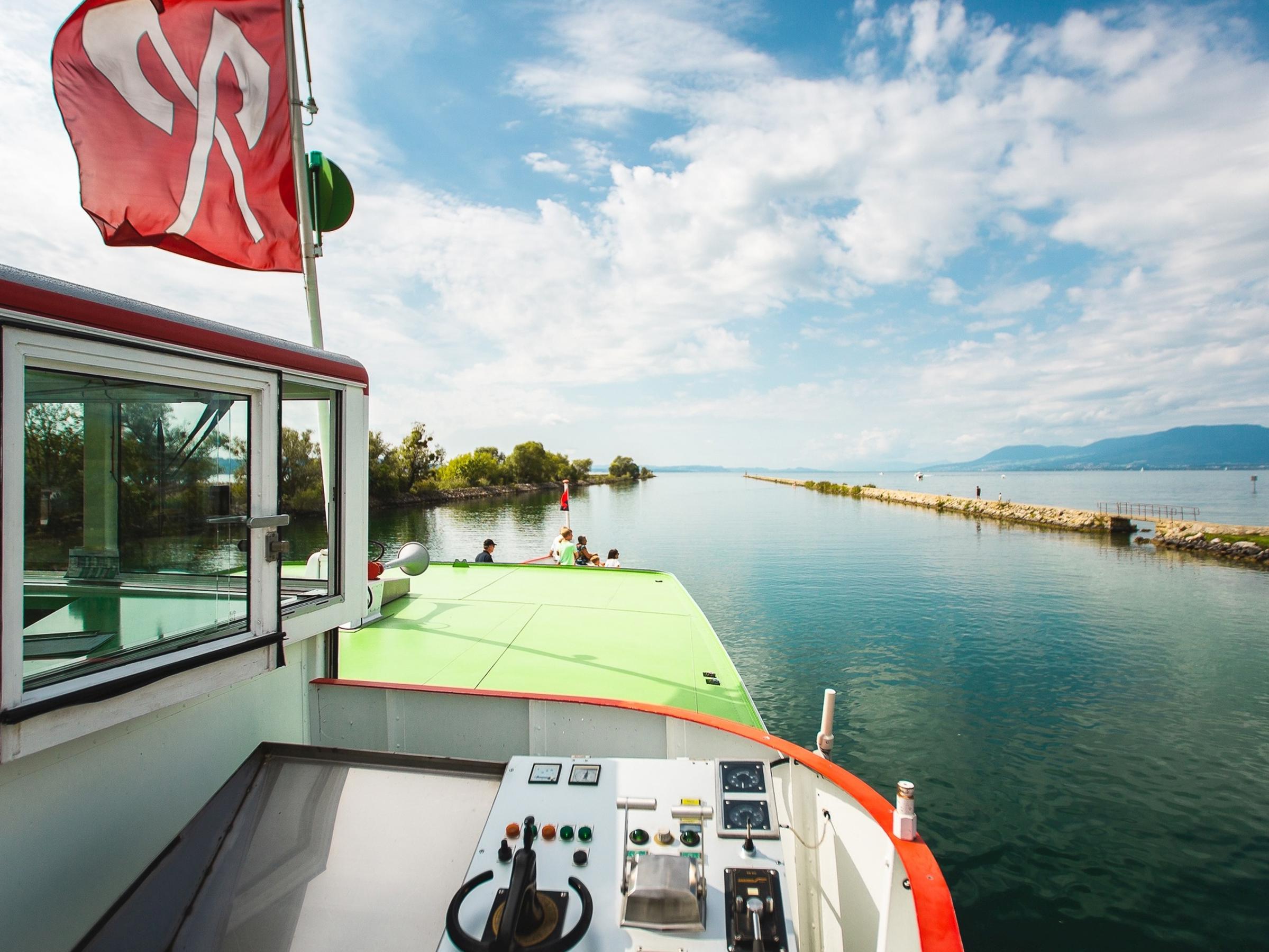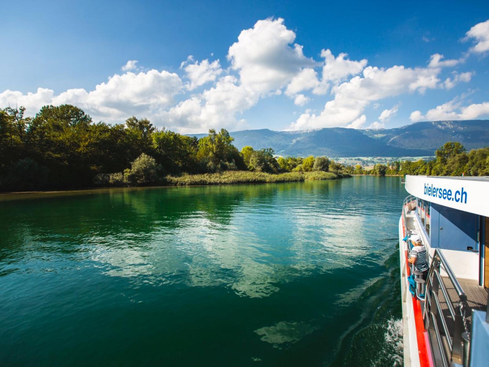 Mit dem Zug nach Biel/Bienne Bahnhof, dann zu Fuss zur Ländte Biel/Bienne