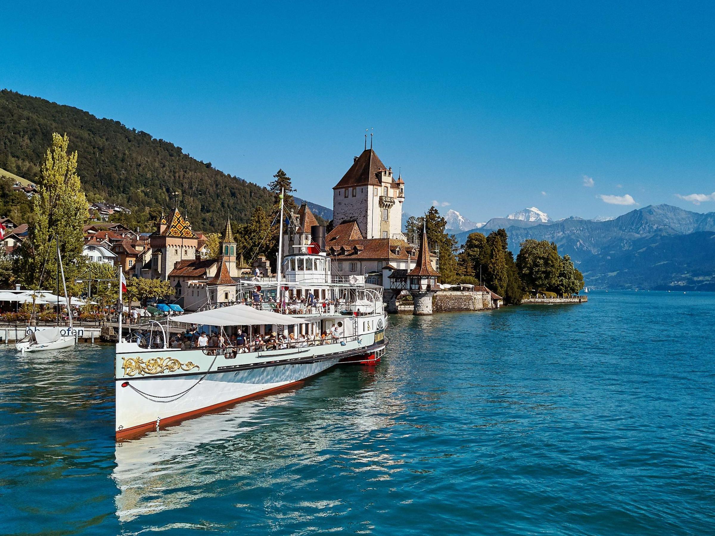 Zug bis Thun Bahnhof, dann zu Fuss zur Ländte.